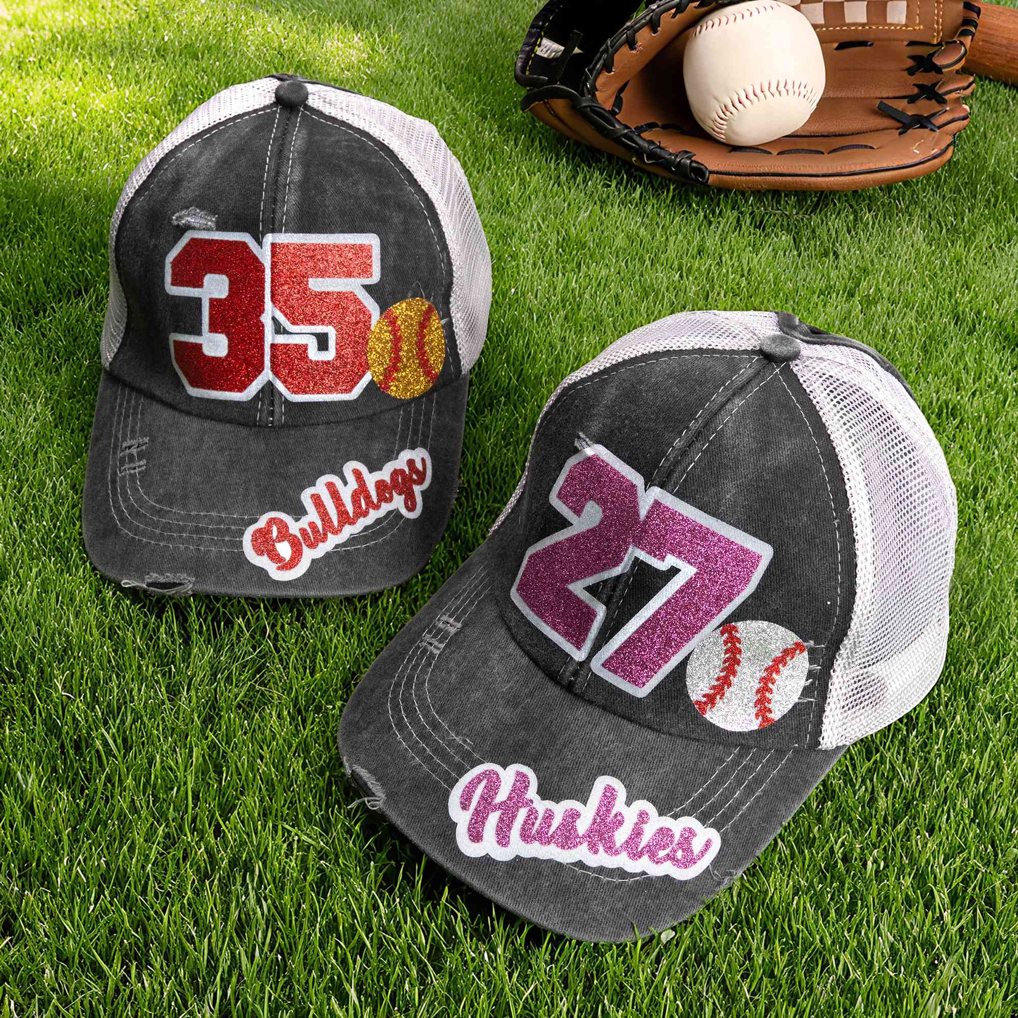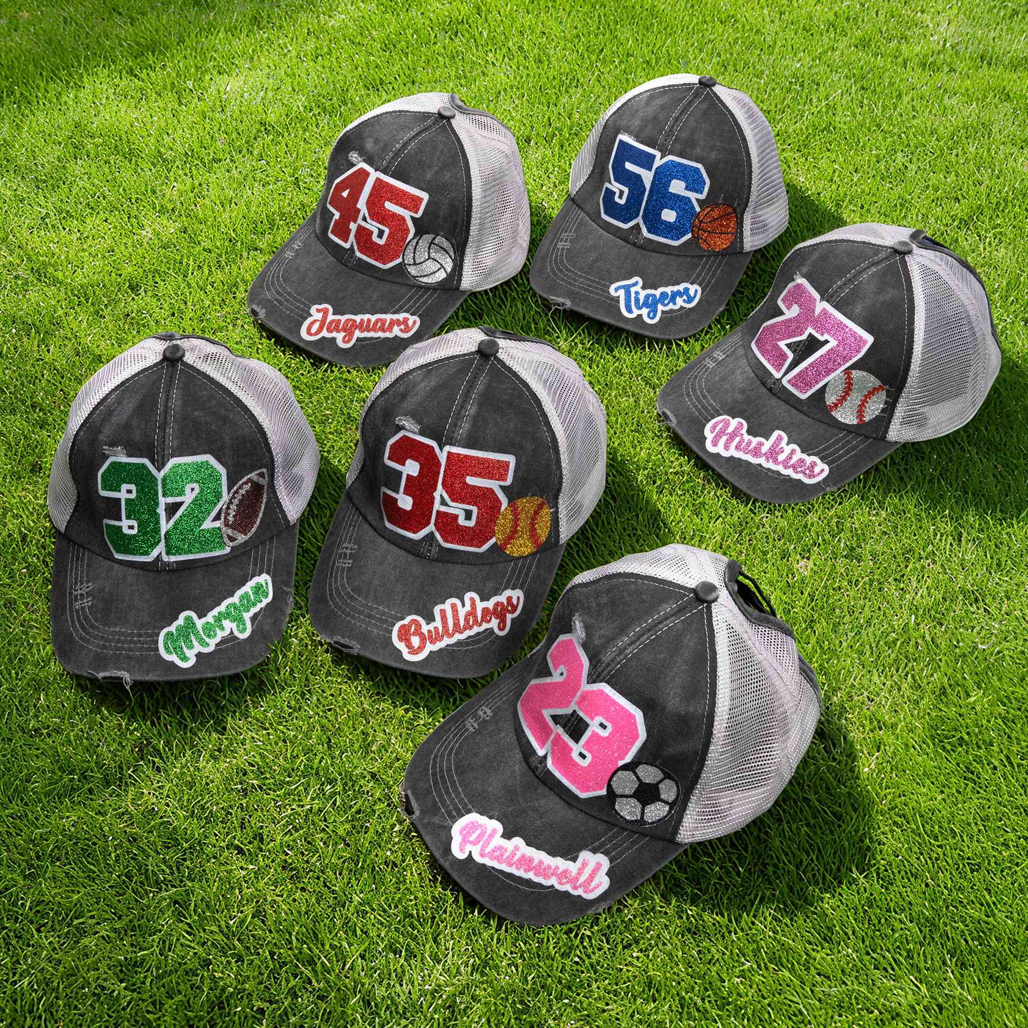 Retro Sports-Inspired Style - Designed with a classic sportswear look, this hat features a personalized number on the front along with your choice of sport, including soccer, softball, baseball, basketball, rugby, or volleyball, displayed in a glitter and eye-catching style. The brim can also be customized with a name, while the shimmering color details give each hat a unique look that represents the wearer’s identity, favorite athlete, or role on the team.