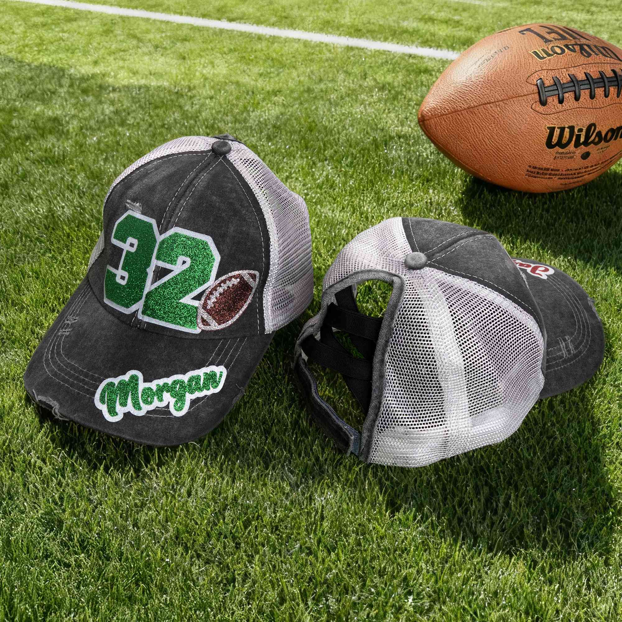 Personalized Name & Number Glitter Sports Ball Design Mesh Back Cap, Soccer/Baseball/Basketball Hat, Game Day/Birthday Gift for Sports Lovers/Players