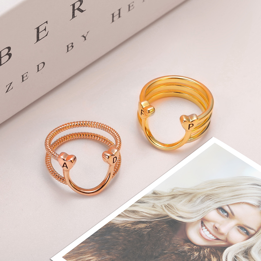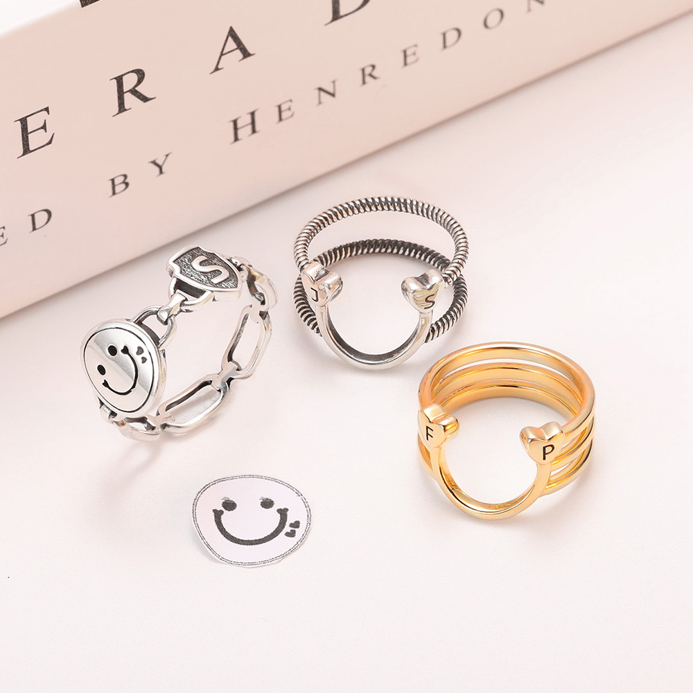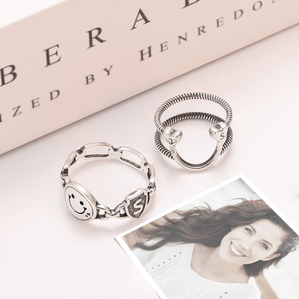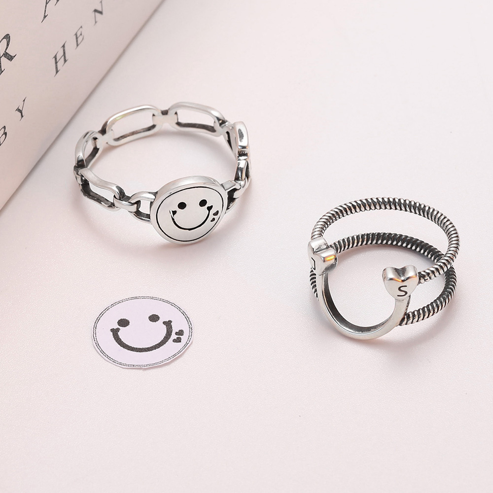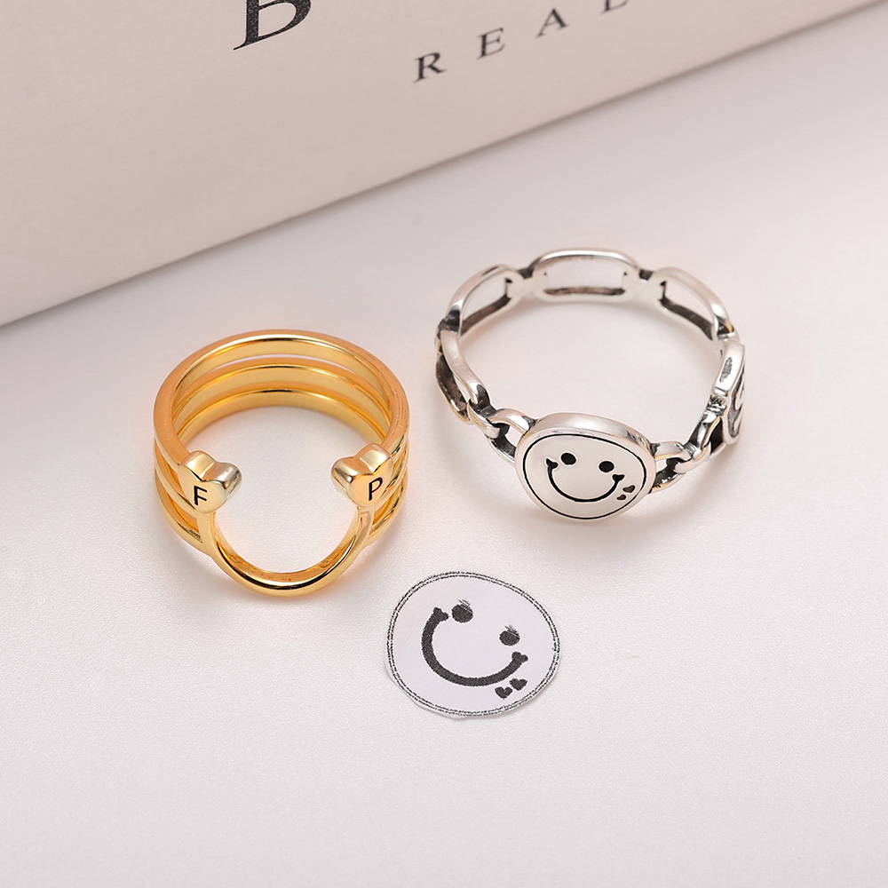 Product design: His ring is a fixed style, and her ring has two styles. One has a simple ring, and the other has a rope woven form. The front of her ring design combined with heart and curves makes it look just like a smiling face. In addition, the first letter of the couple's name can be carved on the heart. His ring uses a direct smiley symbol. In order to increase the masculinity of his ring, we used the element of the chain for it.