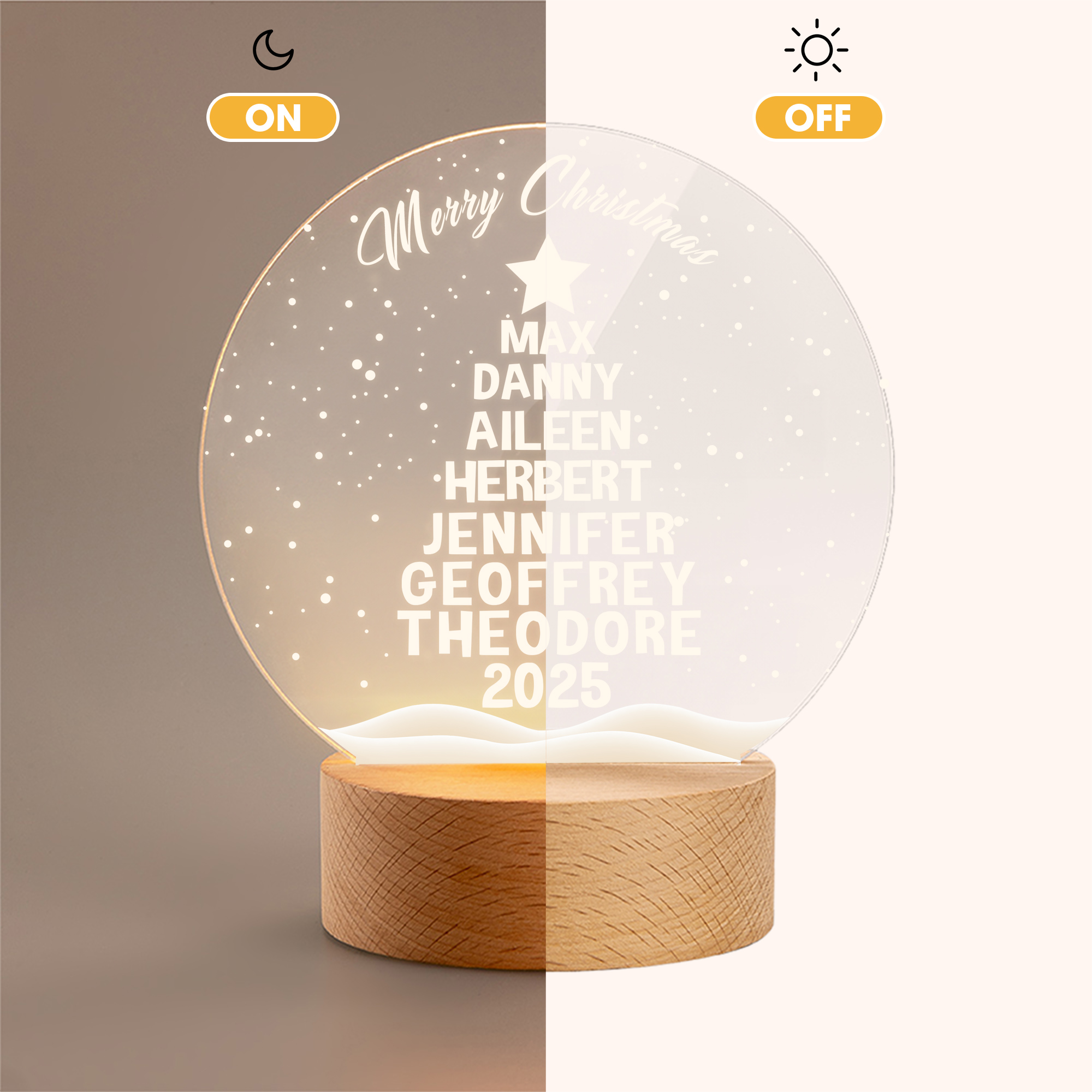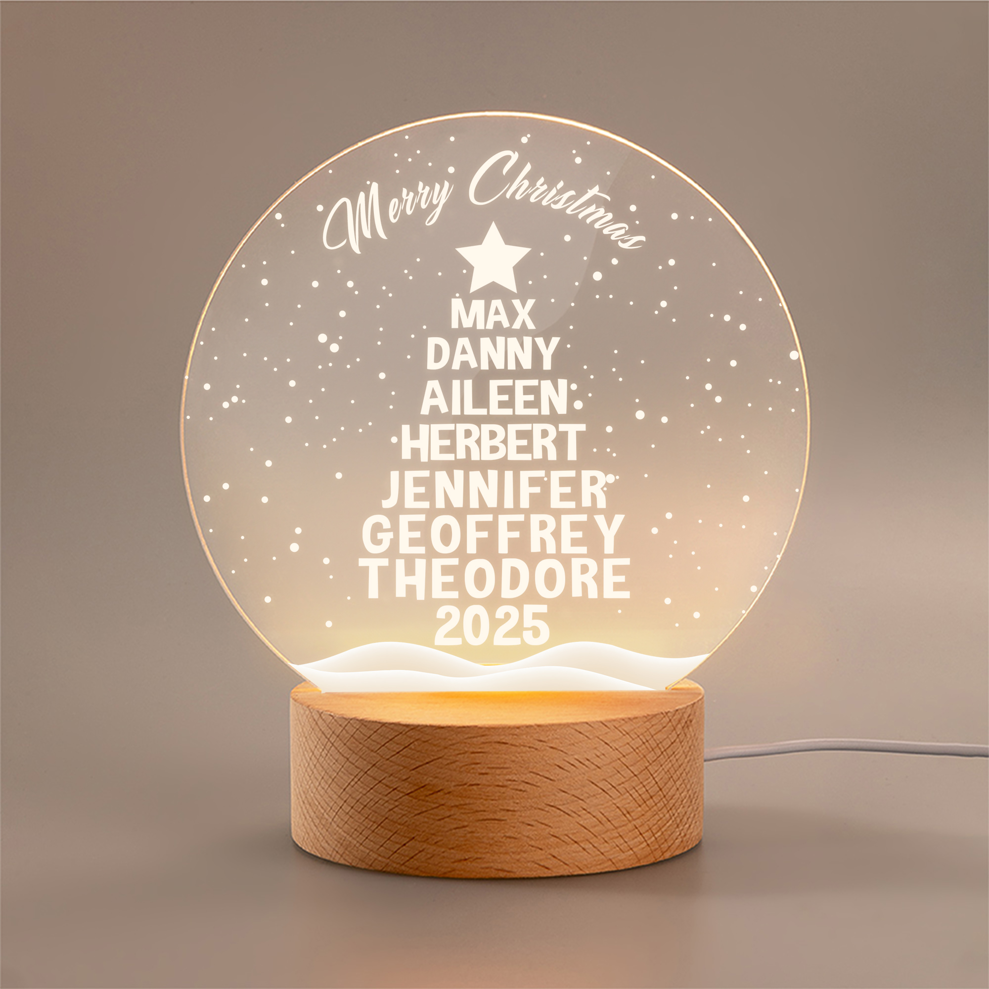 Creative Family Tree Design - This personalized Christmas tree LED night light features an imaginative design that allows customization with the names of 2–10 family members along with a special year. The arrangement of names forms a symbolic family Christmas tree, blending love and togetherness into your festive décor. The gentle glow paired with this meaningful layout turns it into a heartfelt keepsake that warms your home with a cozy holiday spirit.