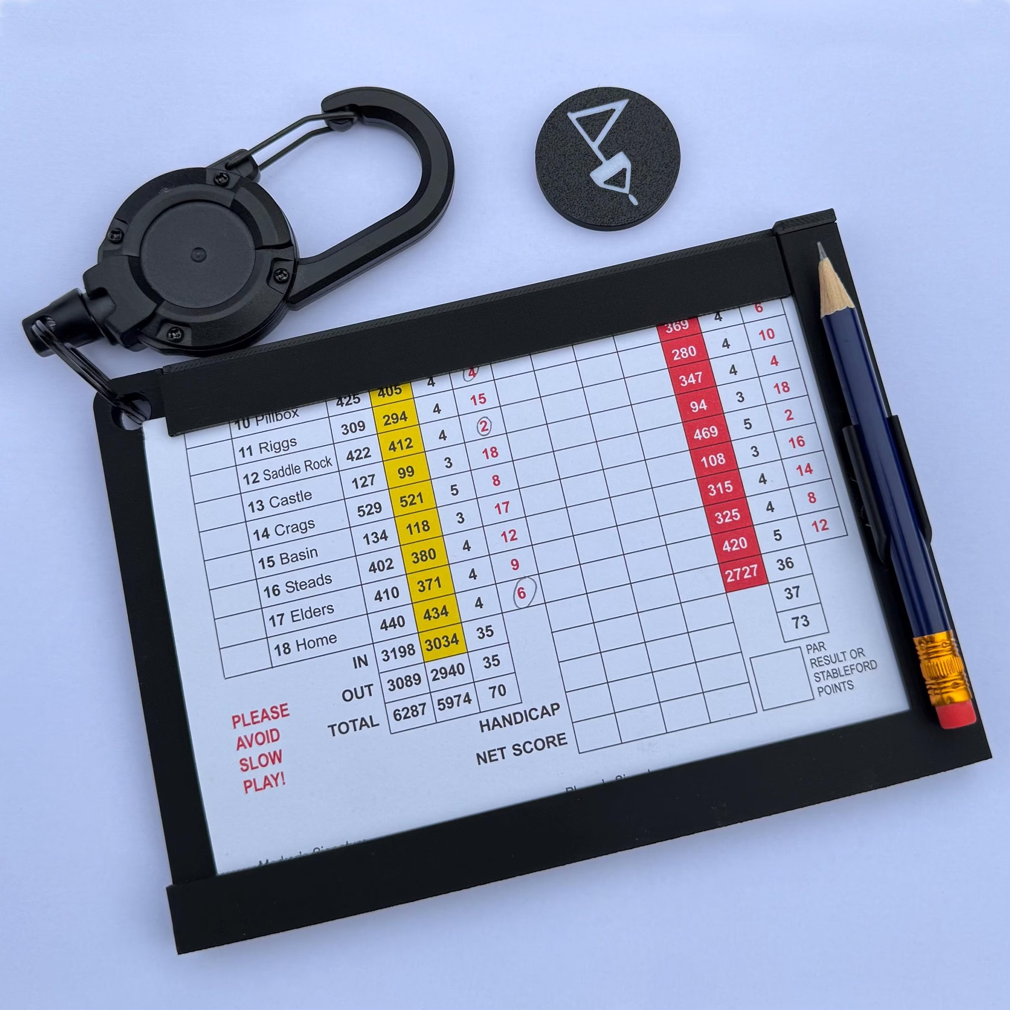 Thoughtful Features - This portable scorecard holder includes a retractable, durable keychain and a detachable ball marker, ensuring you always have everything you need within reach. Plus, it comes with a pencil, enhancing its practicality for golfers of all skill levels.