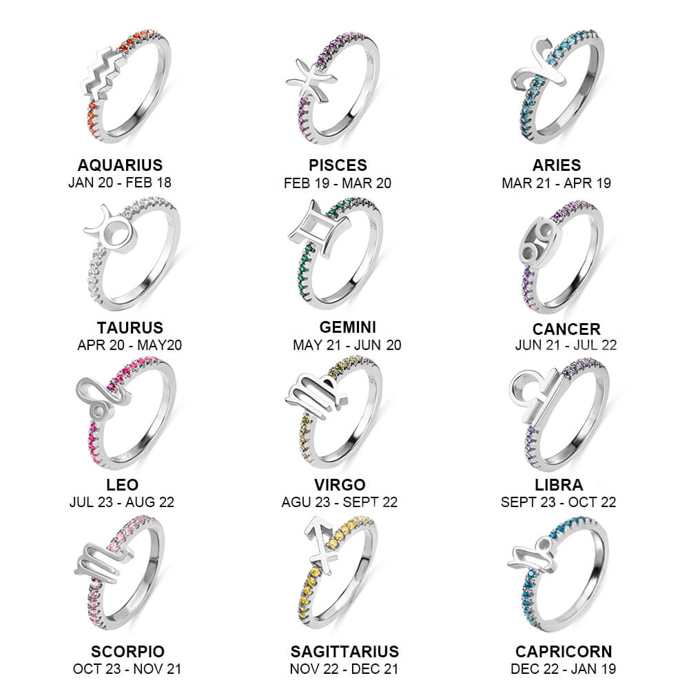 Celebrate your own birth constellation with the delicate personalized ring. Crafted from sterling silver, this constellation ring with shinny birthstone stars that are scattered on the ring band. Custom the constellation and birthstone to create a perfect ring to show your style! The perfect gift for the lovers of astrology.
