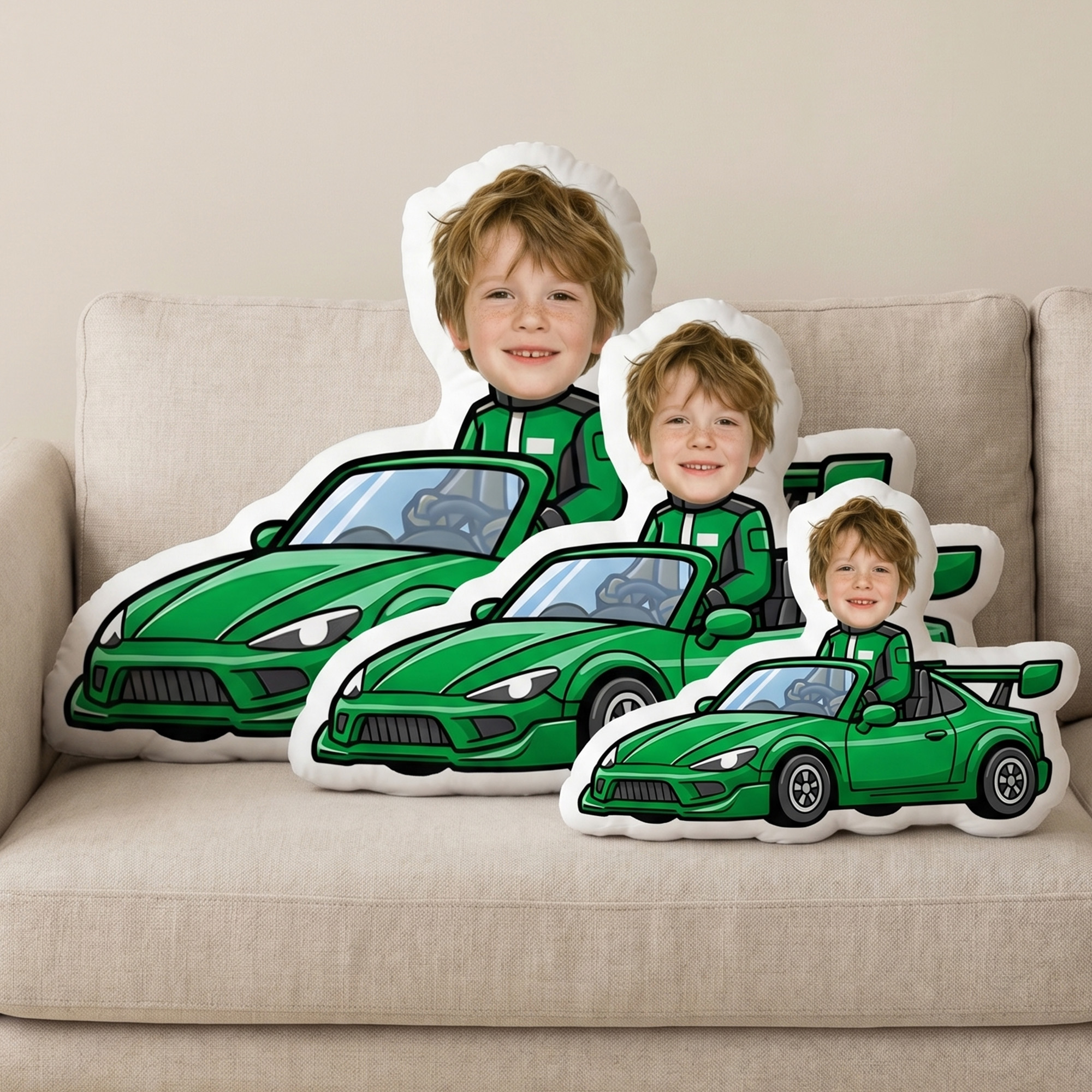 Photo Personalization - Add a face photo to create a one-of-a-kind cartoon racing character pillow that feels truly personal. This custom design transforms a special memory into a fun and creative cushion, perfect for showing off your love for racing in a unique way.