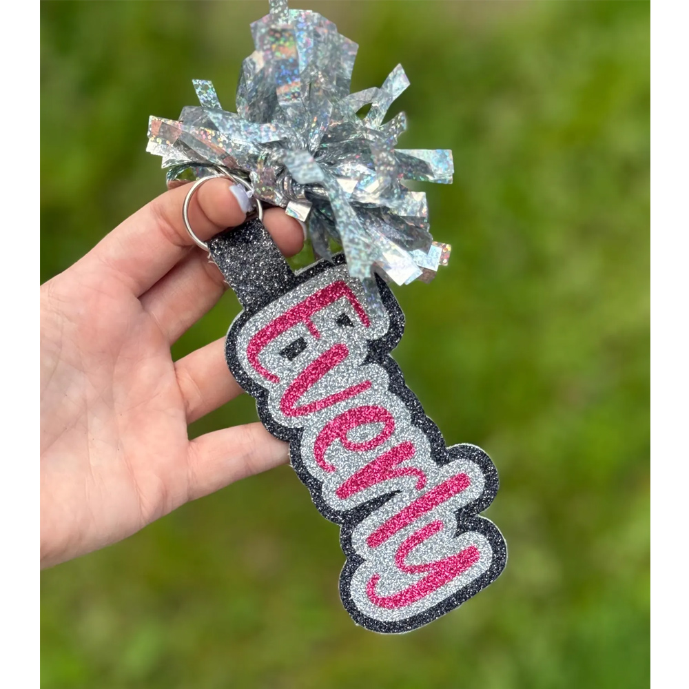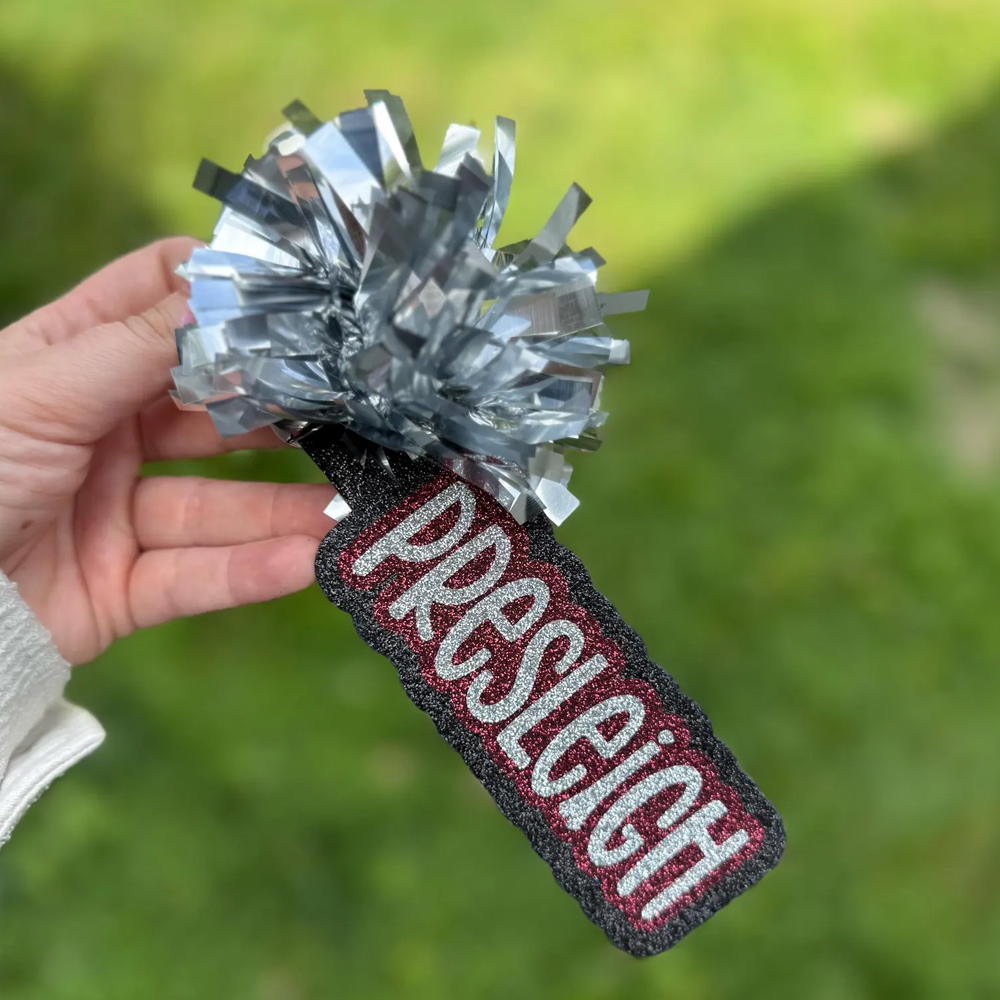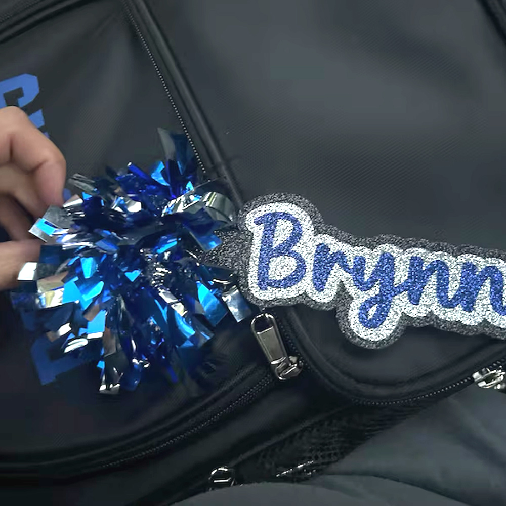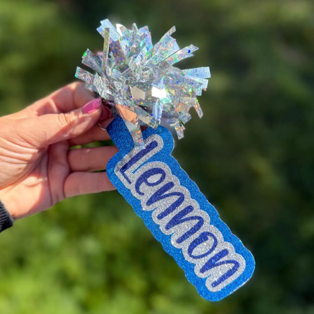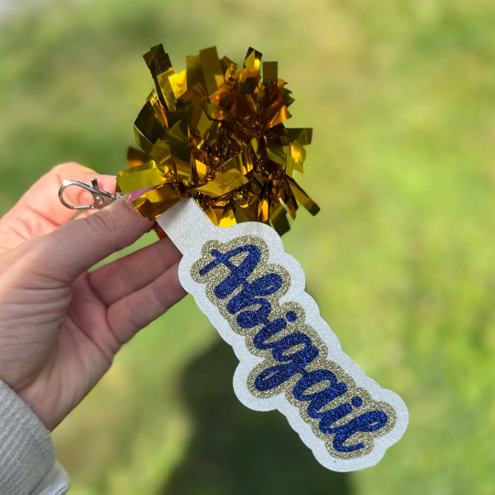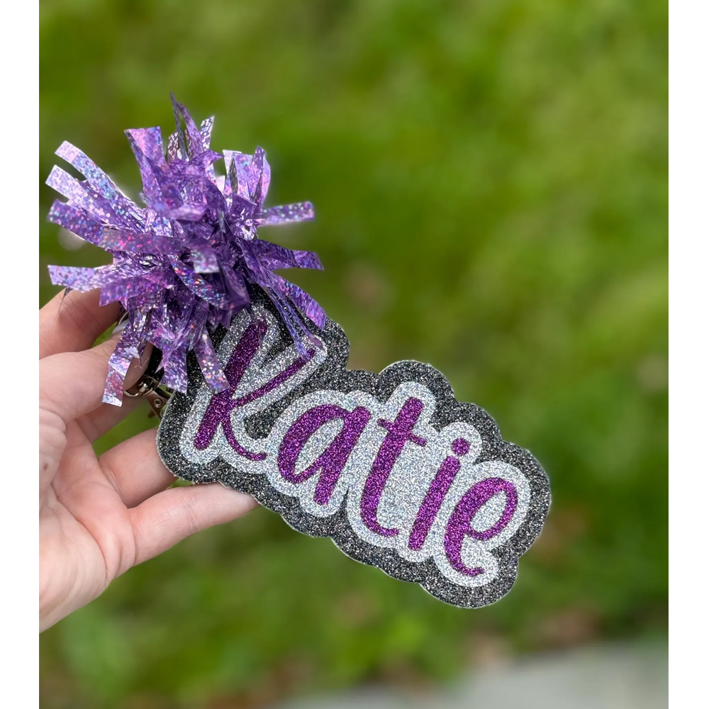 Style Personalized Glitter Cheer Name Tag with Pom