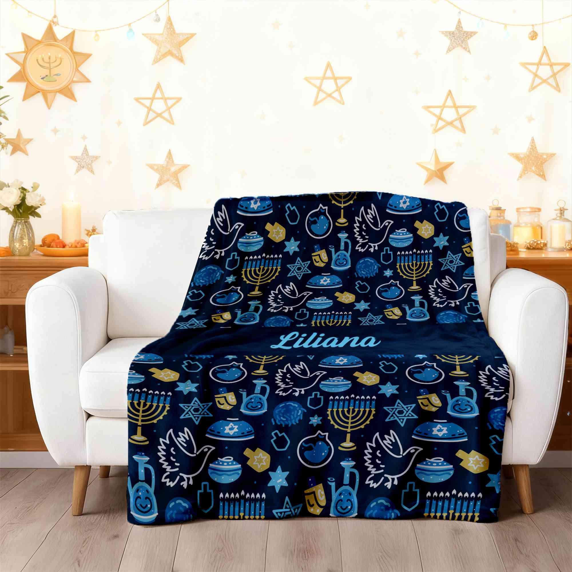 This personalized Hanukkah blanket is a delightful addition to your holiday celebrations. Customize it with a name to create a unique and meaningful throw that honors the traditions of the Jewish festival of lights.