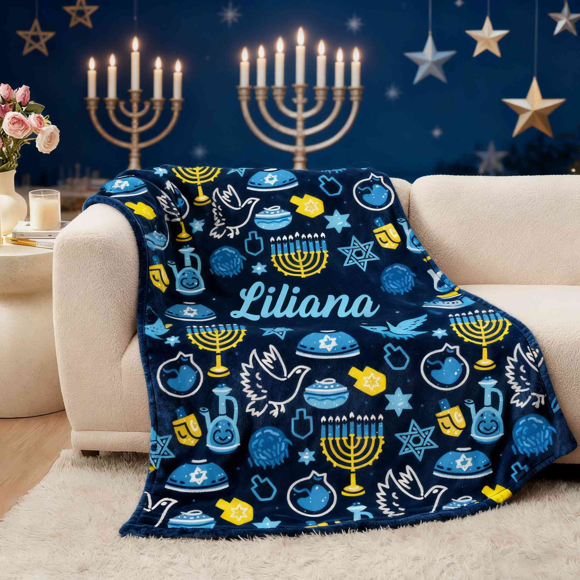 Ideal for Hanukkah, birthdays, or special occasions, this customized blanket makes a wonderful gift for family members and friends. It’s a heartfelt way to celebrate the season and create lasting memories together.