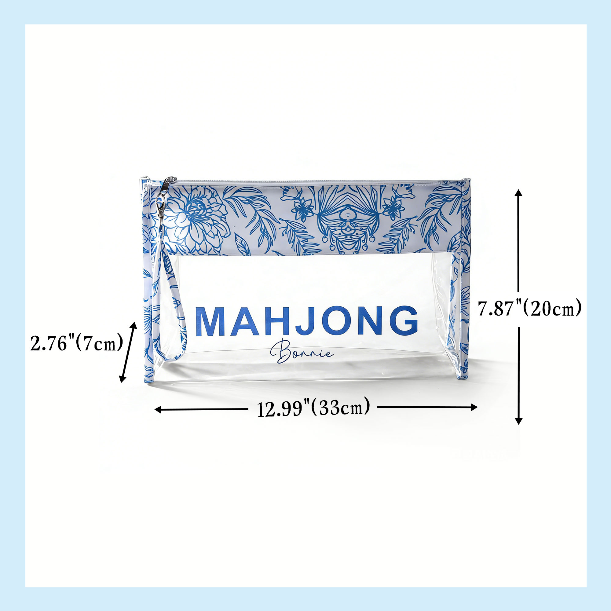 Personalized Name Blue and White Porcelain Mahjong Storage Bag, Large Capacity Waterproof Transparent Storage Bag with Zipper, Gift for Mahjong Lovers