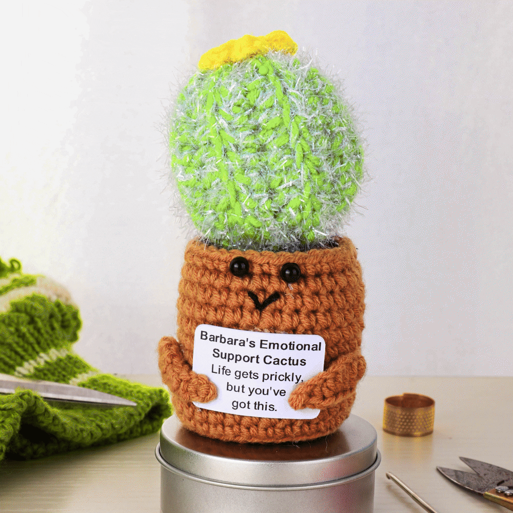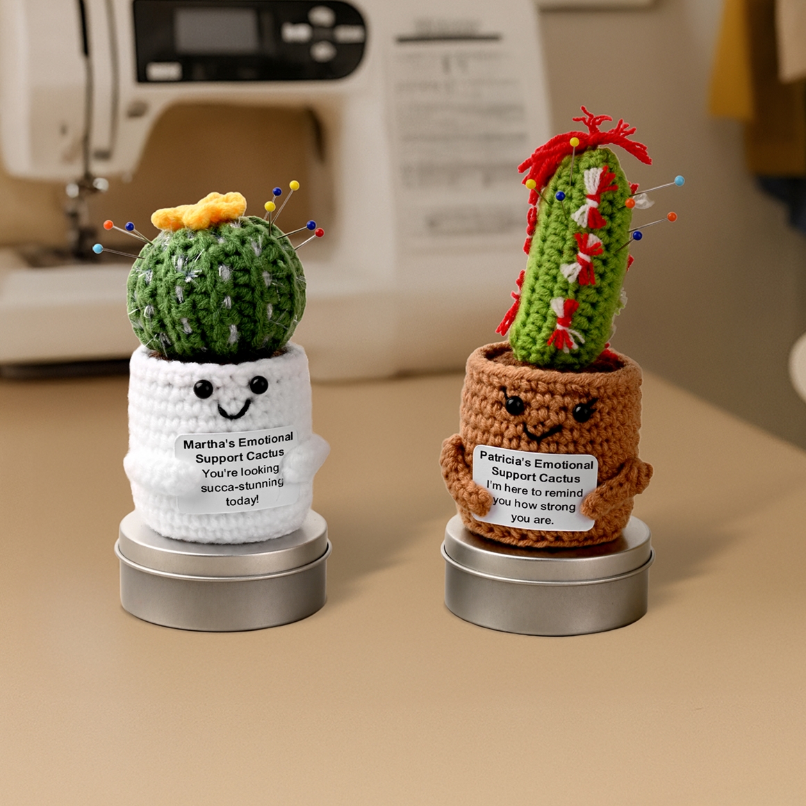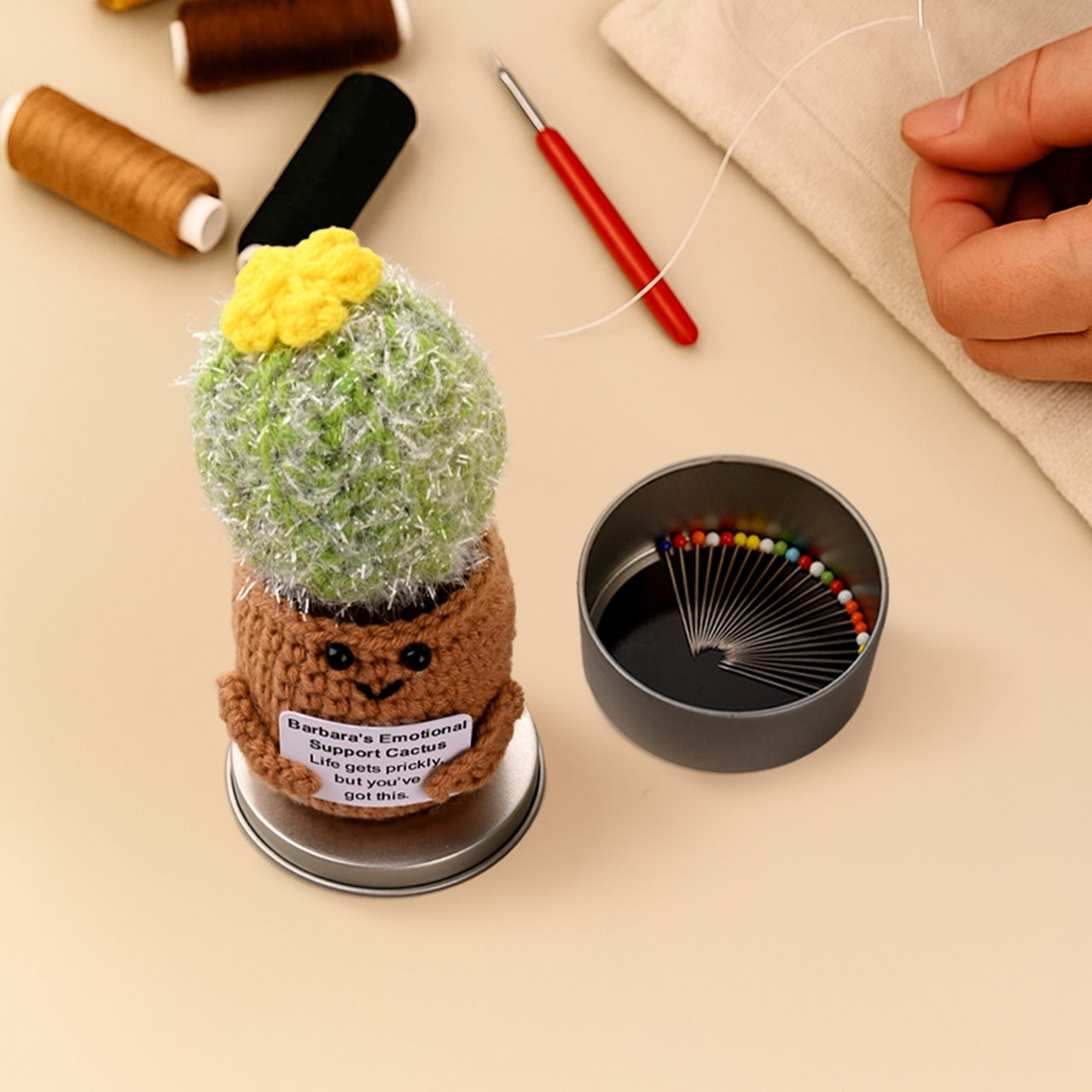 | Style | Personalized Name Crochet Emotional Support Cactus Pincushion with Magnetic Storage Box |