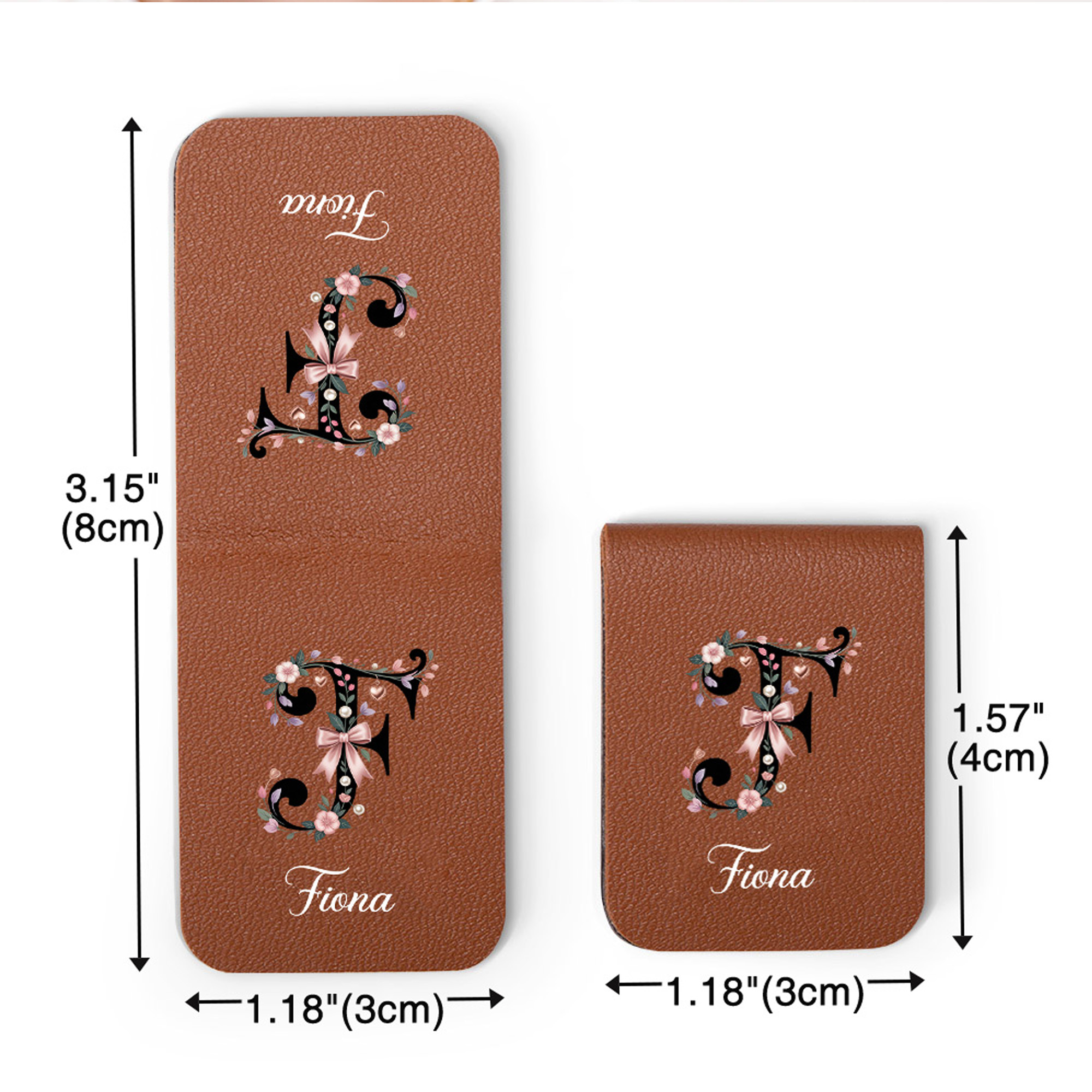 Floral Initial Artwork - This magnetic leather bookmark displays soft floral details accented with bows and pearl elements around a classic alphabet letter. The elegant layout creates a tasteful and symbolic accessory for readers who enjoy meaningful designs and a timeless look.