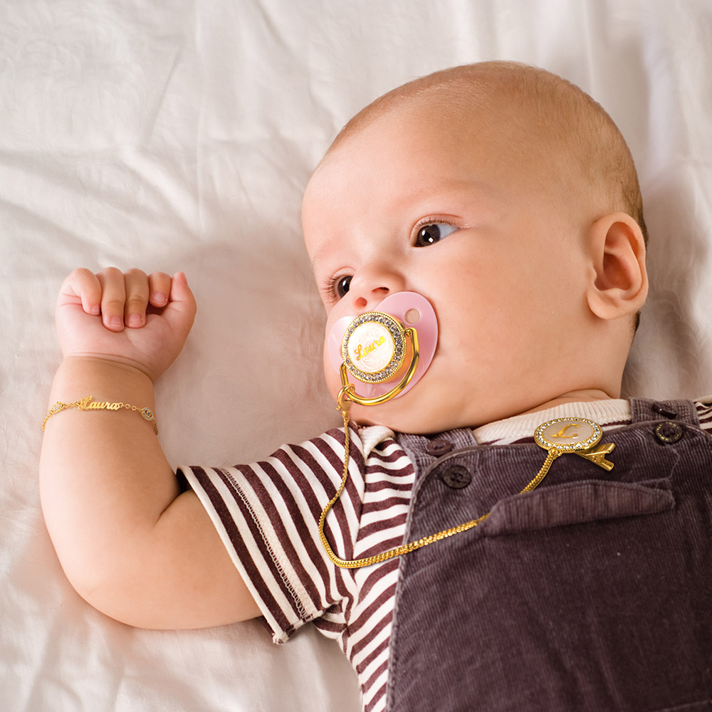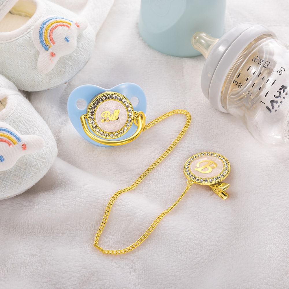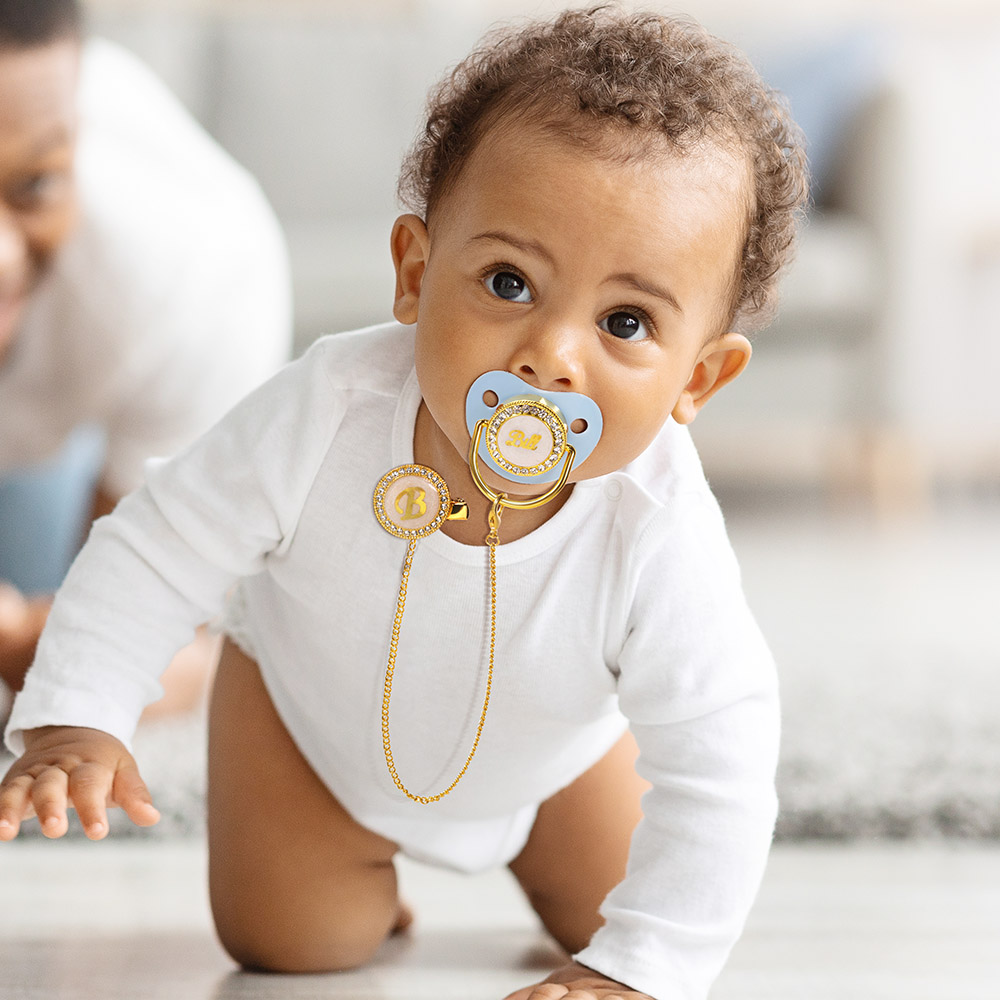 Luxurious Gift - The gold detailing on the pacifier clip adds a touch of luxury, making it a thoughtful and high-end gift for baby showers, newborns, or as part of any newborn essentials collection.