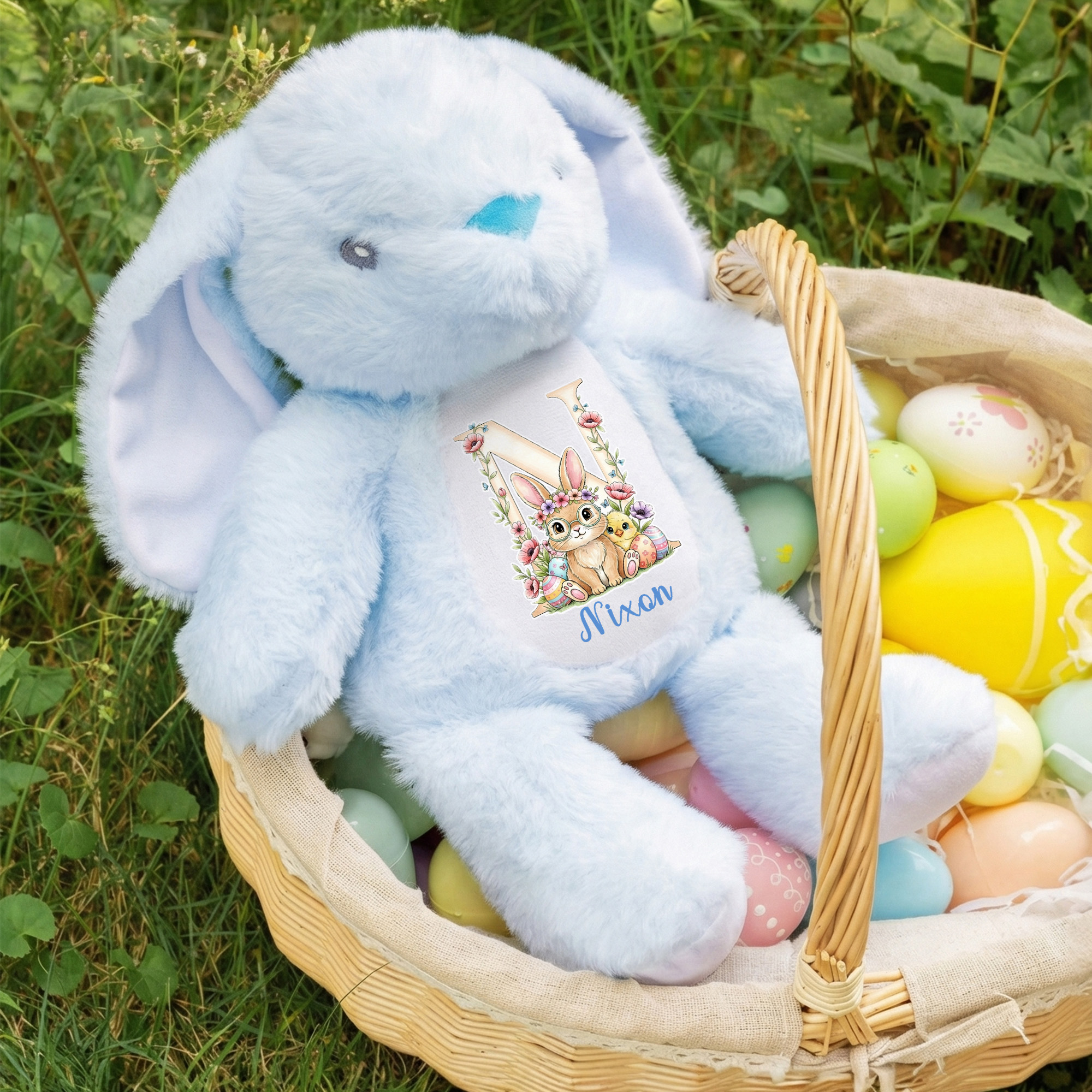 Personalization - The plush bunny can be customized with a child’s name and coordinating initial, giving it a special touch that makes Easter celebrations feel more personal and memorable.