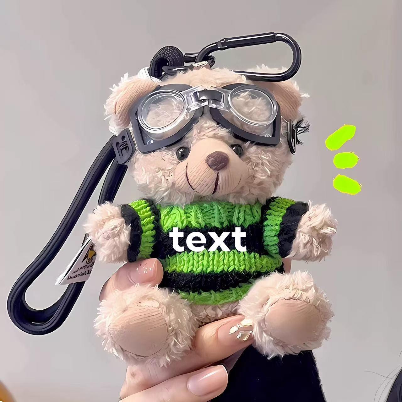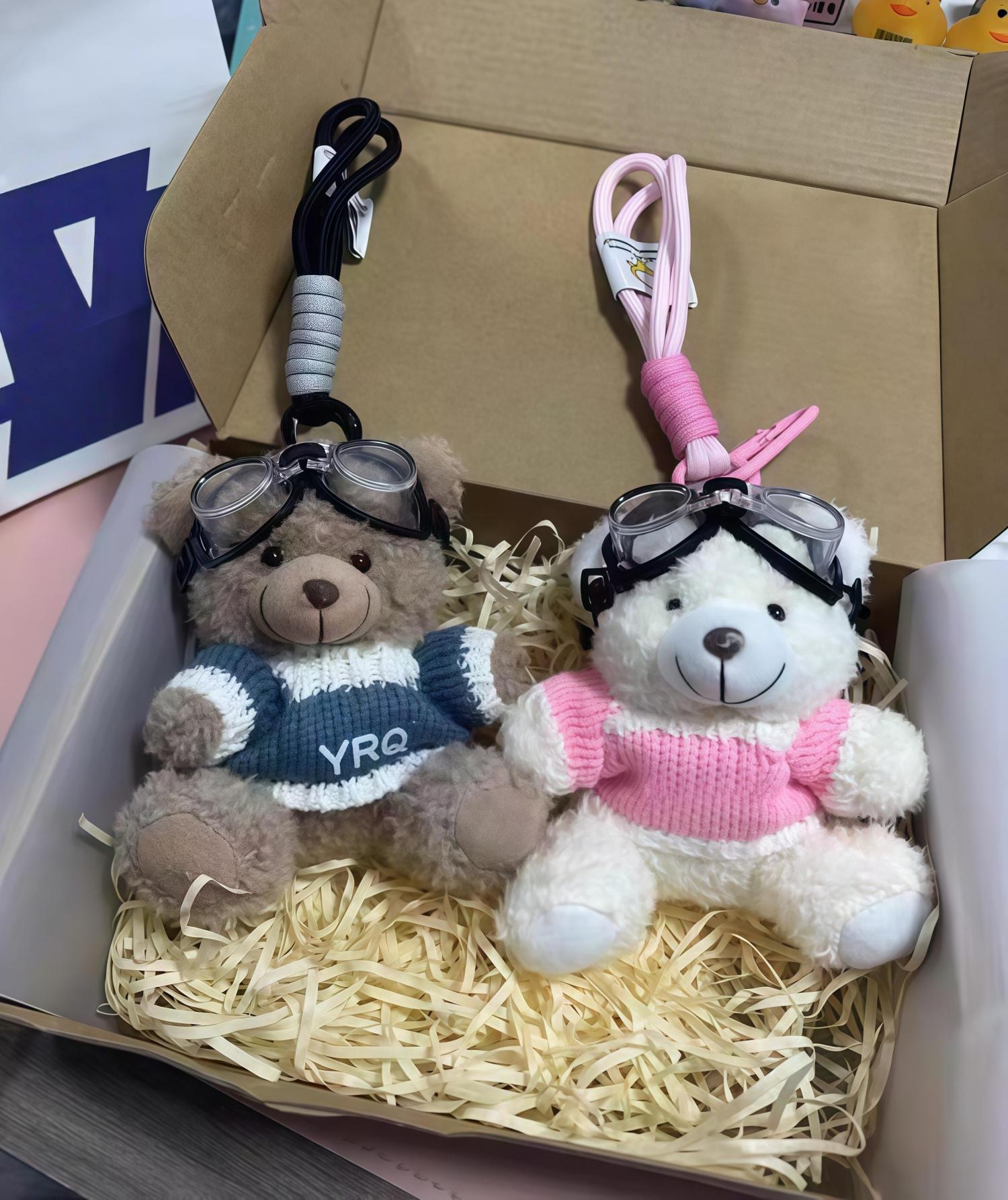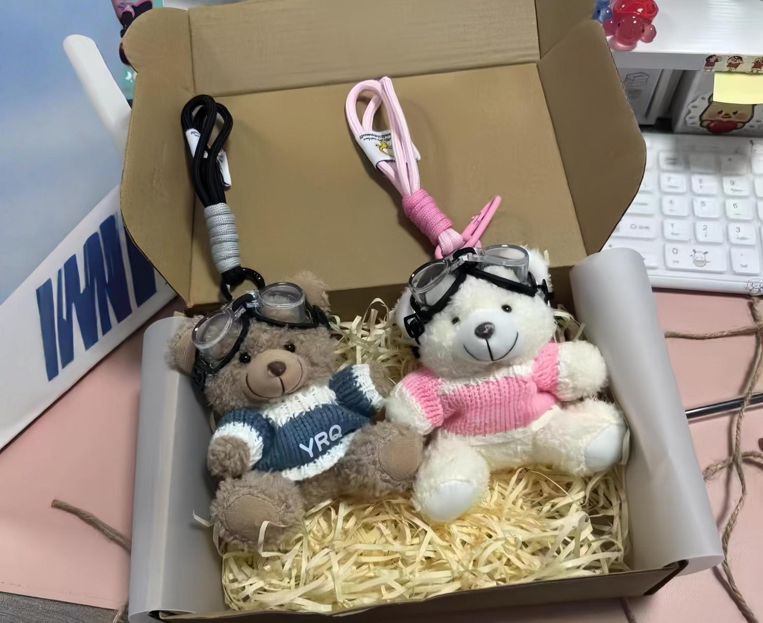 Cute Bear Design – This keychain features a charming plush teddy bear wearing a cozy knitted sweater and playful aviator goggles. Its compact size and cheerful appearance make it a delightful addition to any bag or set of keys.